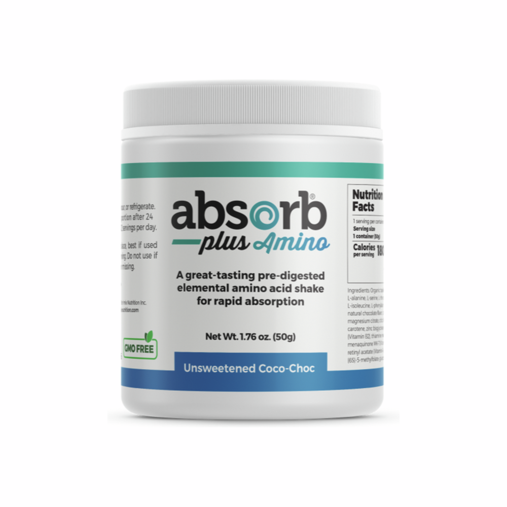 May be used exclusively as part of an elemental, bowel rest diet (reduced faecal matter), along with other foods as part of a low residue diet, or to provide high-quality nutrients in liquid, easily-digested form. May also be used for food clearance or allergy testing. Absorb Plus Amino has been carefully formulated to meet the unique needs of people who have problems chewing, swallowing, digesting, or absorbing their food. BEST tasting elemental shake on the market!