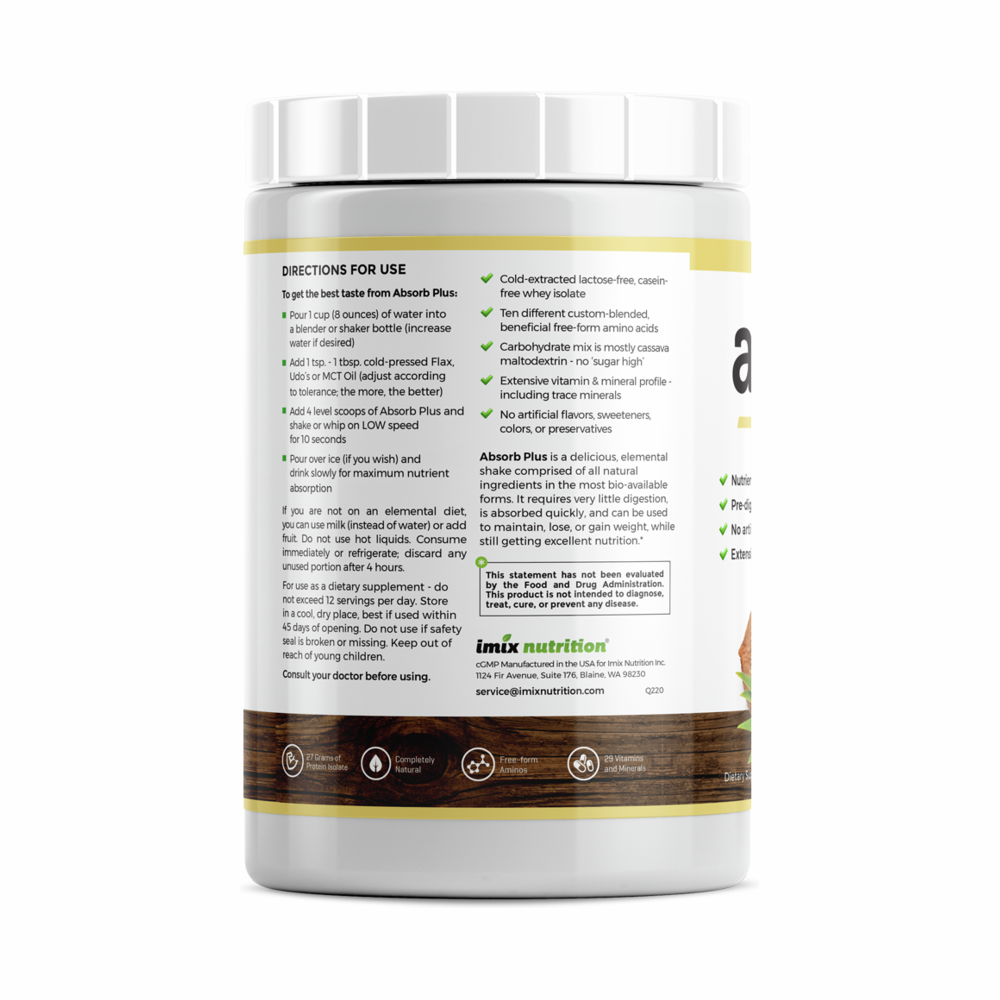 Absorb Plus is a protein drink that has been carefully formulated to meet the unique needs of people who have problems chewing, swallowing, digesting or absorbing their food. Absorb Plus has exceptional nutritional value and extremely high-quality ingredients, including vitamins and minerals and a blend of amino acids, such as l-glutamine, which may help heal leaky gut.