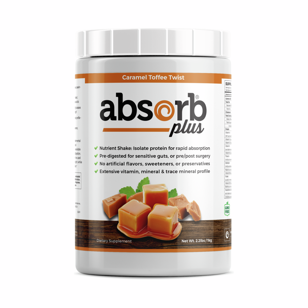 Absorb Plus Caramel Toffee Twist is a delicious, nutrient shake comprised of all-natural ingredients in the most bioavailable forms. It requires very little digestion and is absorbed quickly.