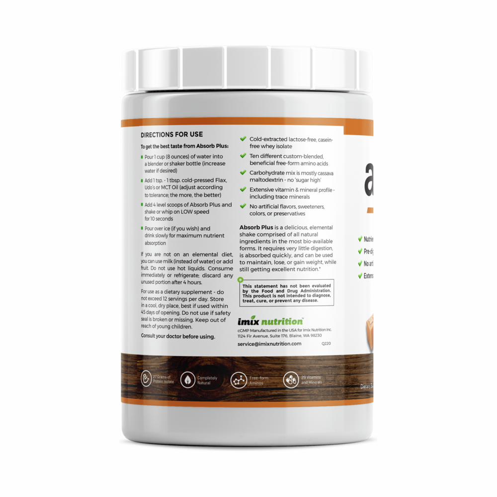 Absorb Plus is a protein drink that has been carefully formulated to meet the unique needs of people who have problems chewing, swallowing, digesting or absorbing their food. Absorb Plus has exceptional nutritional value and extremely high-quality ingredients, including vitamins and minerals and a blend of amino acids, such as l-glutamine, which may help heal leaky gut.