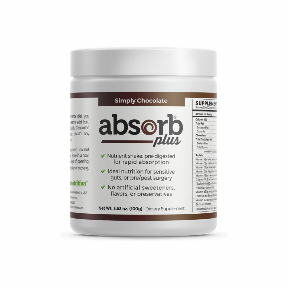 Absorb Plus is a protein drink that has been carefully formulated to meet the unique needs of people who have problems chewing, swallowing, digesting or absorbing their food. Absorb Plus has exceptional nutritional value and extremely high-quality ingredients, including vitamins and minerals and a blend of amino acids, such as l-glutamine, which may help heal leaky gut.