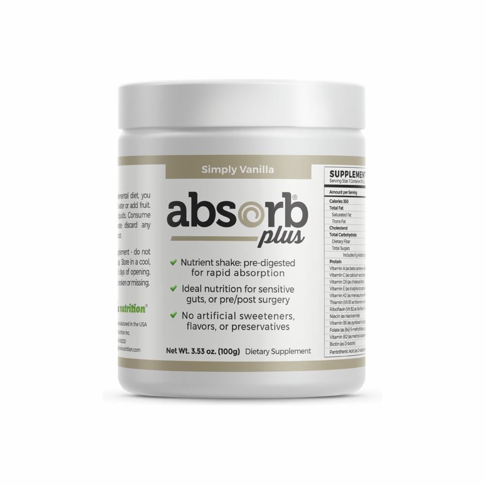 Absorb Plus is a protein drink that has been carefully formulated to meet the unique needs of people who have problems chewing, swallowing, digesting or absorbing their food. Absorb Plus has exceptional nutritional value and extremely high-quality ingredients, including vitamins and minerals and a blend of amino acids, such as l-glutamine, which may help heal leaky gut.