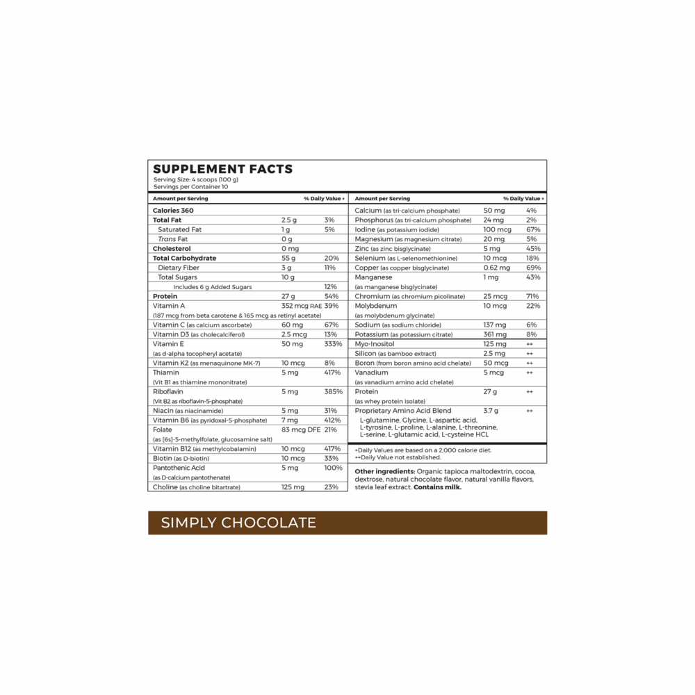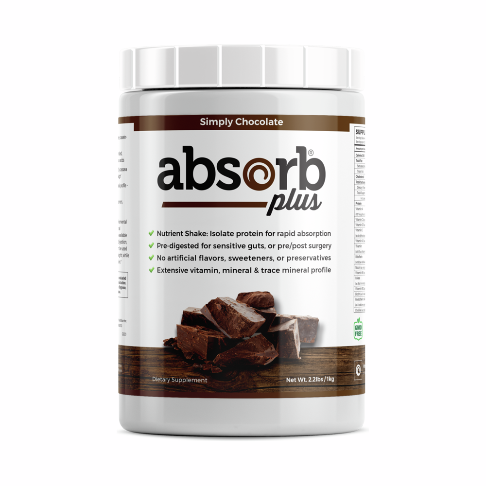 Absorb Plus Simply Chocolate is a delicious, nutrient shake comprised of all-natural ingredients in the most bioavailable forms. It requires very little digestion and is absorbed quickly.