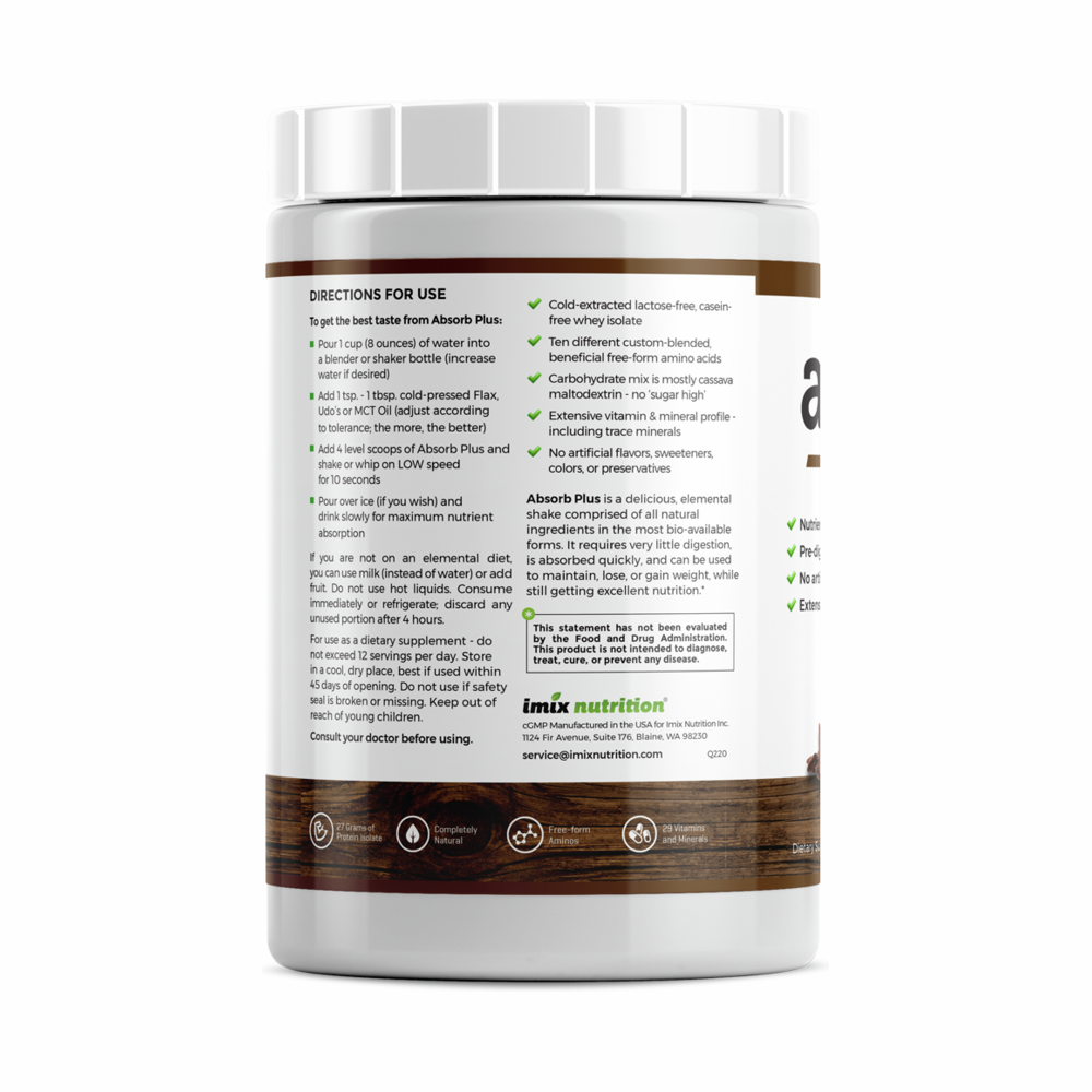 Absorb Plus is a protein drink that has been carefully formulated to meet the unique needs of people who have problems chewing, swallowing, digesting or absorbing their food. Absorb Plus has exceptional nutritional value and extremely high-quality ingredients, including vitamins and minerals and a blend of amino acids, such as l-glutamine, which may help heal leaky gut.