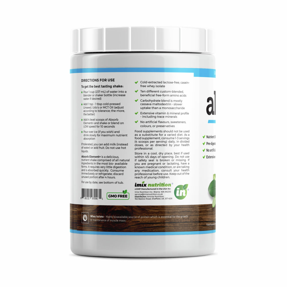 Absorb Element+ is a protein drink that has been carefully formulated to meet the unique needs of people who have problems chewing, swallowing, digesting or absorbing their food. Absorb Plus has exceptional nutritional value and extremely high-quality ingredients, including vitamins and minerals and a blend of amino acids, such as l-glutamine, which may help heal leaky gut.