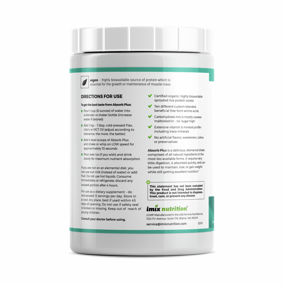 Absorb Plus has been carefully formulated to meet the unique needs of people who have problems chewing, swallowing, digesting or absorbing their food. Absorb Plus has exceptional nutritional value and extremely high-quality ingredients, including vitamins and minerals and a blend of amino acids, such as l-glutamine, to support gut health.