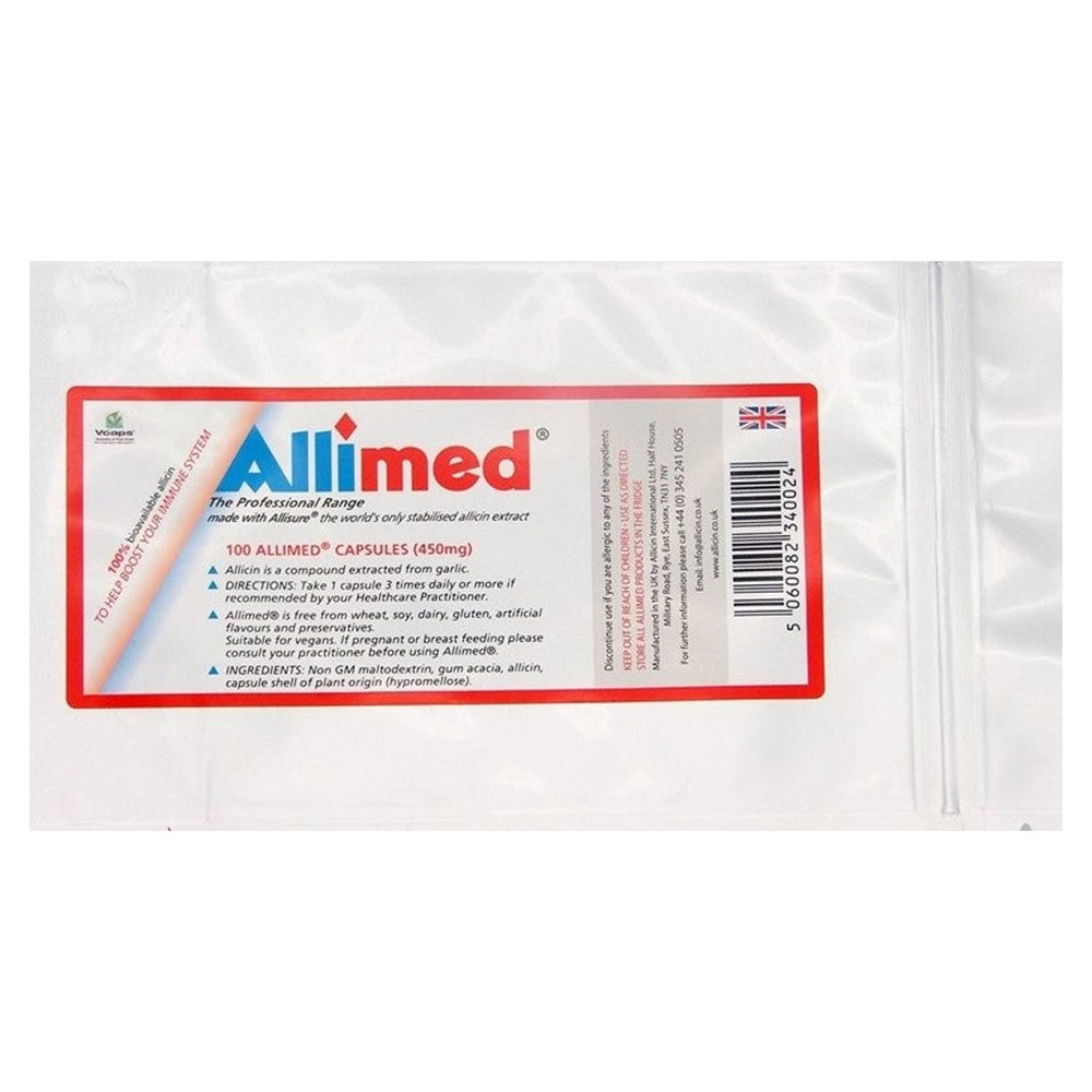 The Allimed® 100 capsule pack provides one month’s supply of stabilised allicin. Each capsule contains 450 mg of Allisure allicin powder. The Allimed® range is designed for Health Professionals.