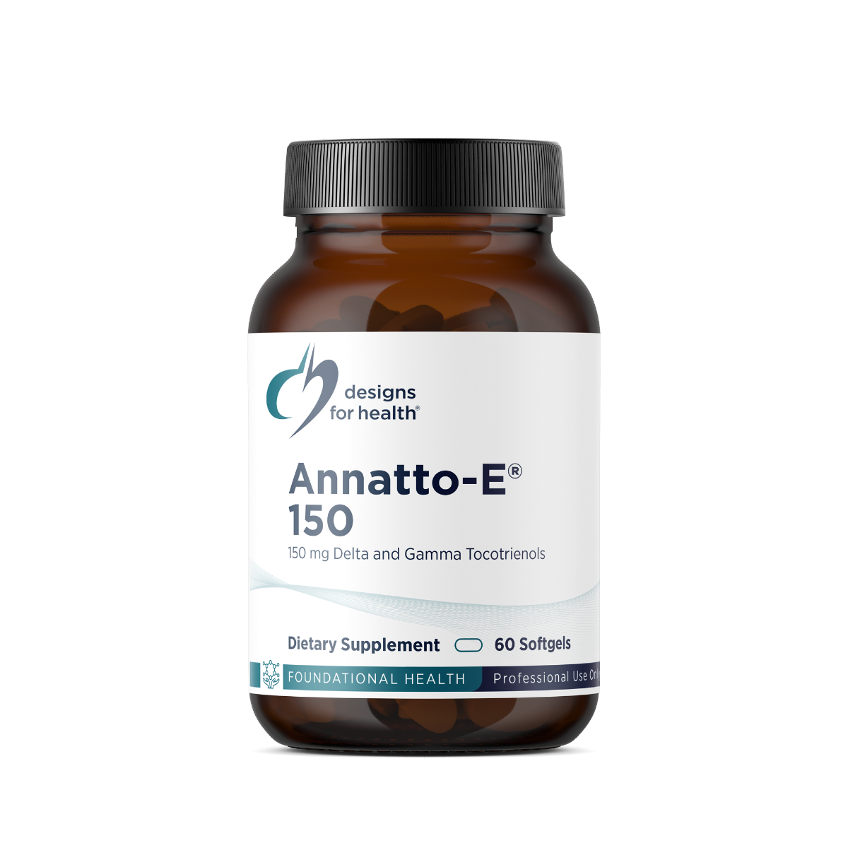 Annatto-E™ 150 contains 150 mg per softgel of delta- and gamma-tocotrienols. Commercial vitamin E supplements are typically rich in tocopherols and low or absent in tocotrienols; however, tocotrienol fractions have unique beneficial effects across a variety of tissues that make them desirable for supporting many aspects of health. Research indicates that tocopherols — especially alpha-tocopherols — may interfere with key clinical effects of tocotrienols, so it may be best to take tocotrienols alone, without tocopherols.