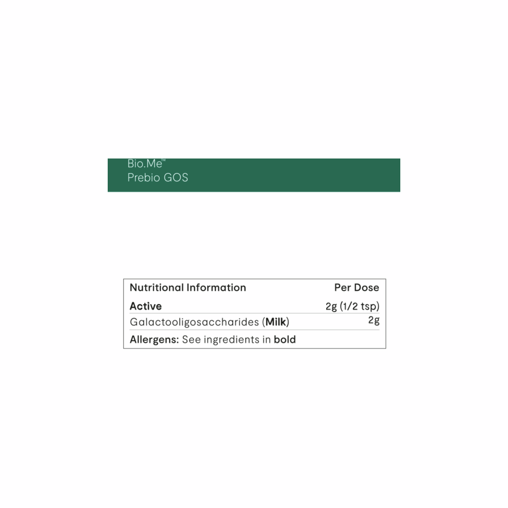 Bio.Me Prebio GOS is a good source of prebiotic fibre, derived from cows milk, which can rebalance the gut microbiome and provide metabolites that are important for the gut barrier. GOS may have beneficial effects in relation to IBS, SIBO and allergies.