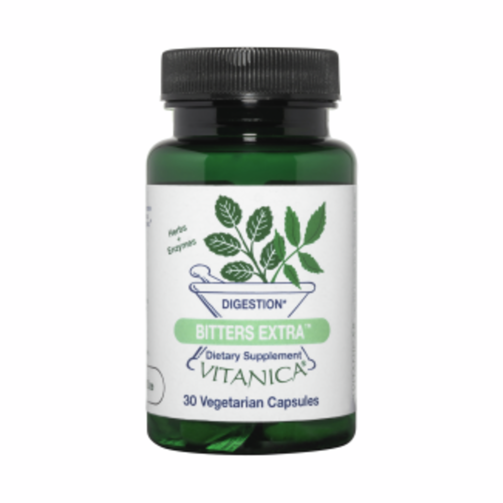 Bitters Extra™ by Vitanica contains natural plant-based enzymes and herbal bitters, to support digestion, resulting in reduced digestive discomfort after meals. By helping the body break down food more efficiently, Bitters Extra™ can also support nutrient absorption and overall digestive health.