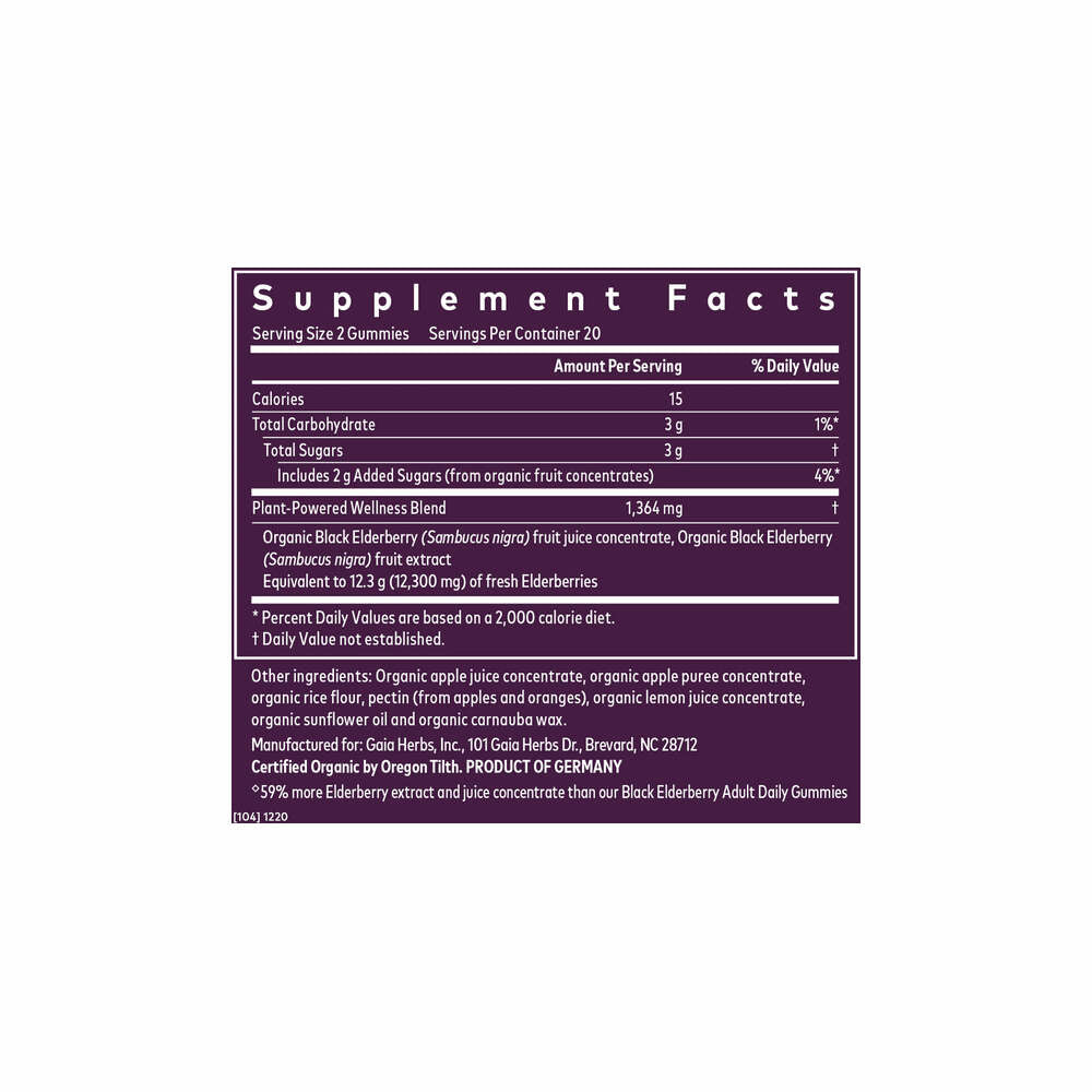 Black Elderberry Extra Strength Gummies - 40 Gummies | Gaia Herbs