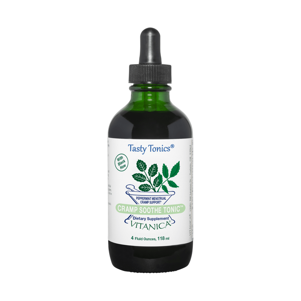 Tasty Tonics™ are concentrated liquid herbal formulas designed with therapeutic doses and blended with natural flavours & essential oils to taste great and encourage compliance for daily use. Cramp Soothe Tonic replaces Cramp Calm Tonic, updating cramp bark with black haw bark, a close relative herb; a botanical formula offering quick support for uterine and smooth muscle tissues during menses or as needed. Packaged in beautiful green glass.
