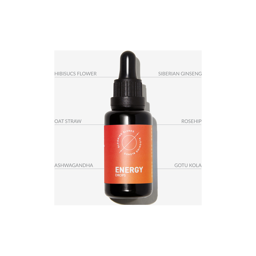 Energy Drops from Blooming Blends. Support your energy with this caffeine-free blend of active botanicals: