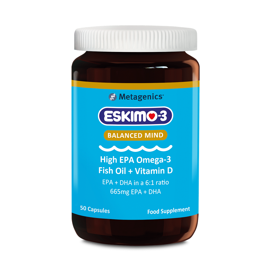 Eskimo® Balanced Mind has been expertly formulated to provide concentrated levels of EPA, an essential fatty acid vital for brain health and emotional balance. With its unique 6:1 EPA to DHA ratio, it’s designed to target mental well-being, stress management, and inflammation balance.