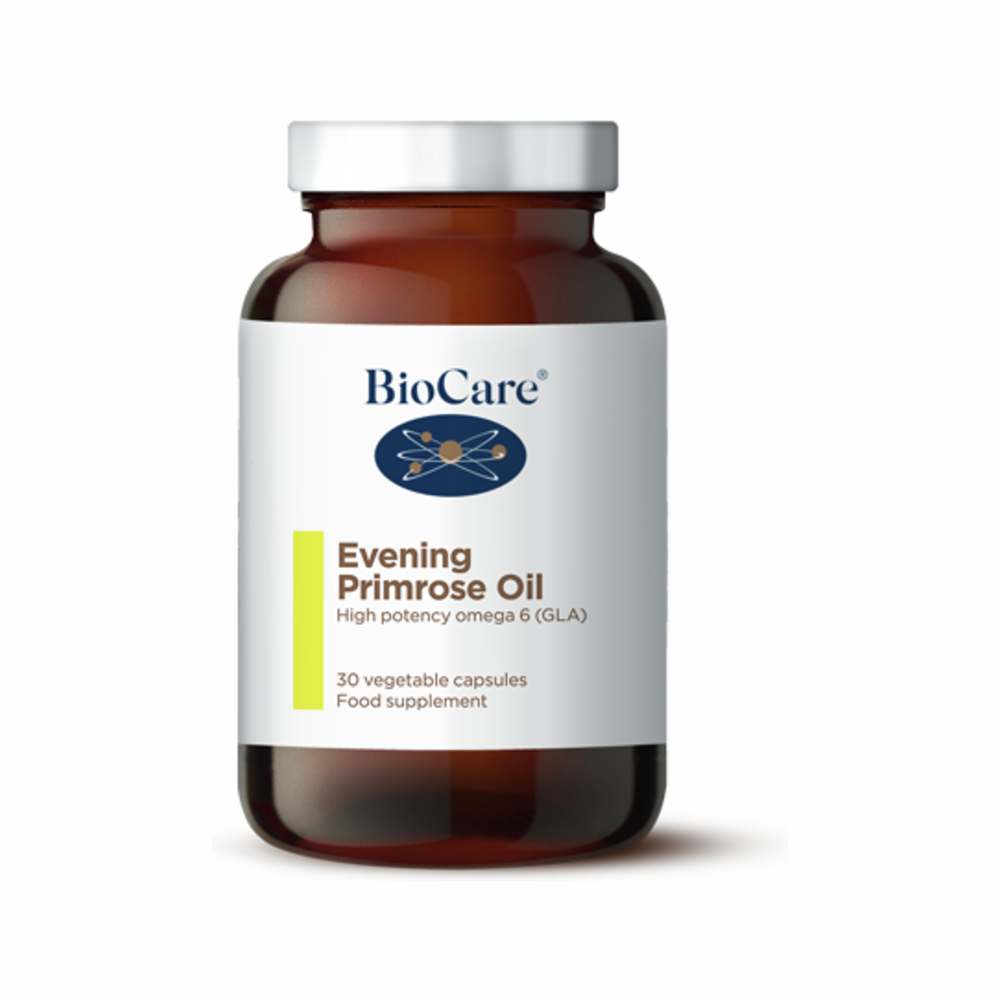 Evening Primrose Oil from BioCare is a high potency source of omega 6 (GLA) with vitamin E to help maintain hormone balance and healthy skin. Can support cardiovascular health.