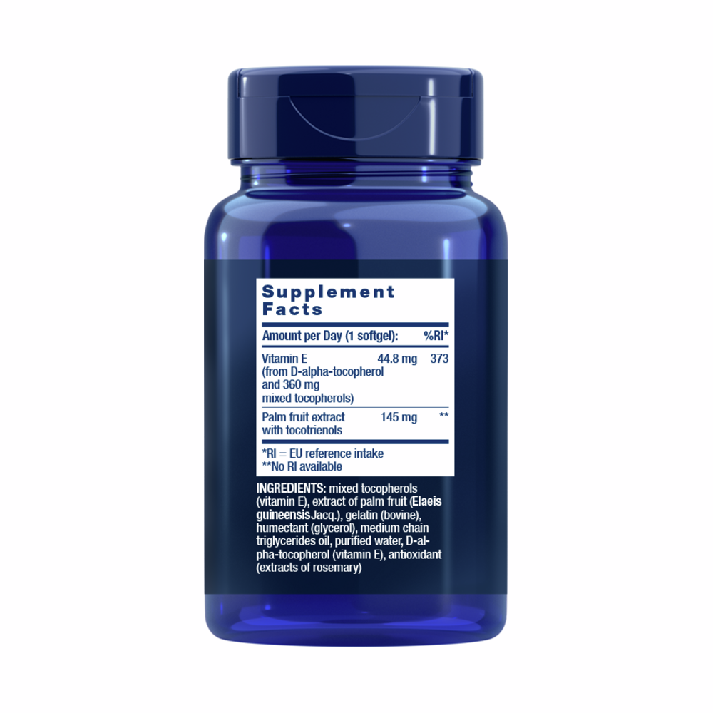 Gamma E with Tocopherols and Tocotrienols offers complete spectrum of vitamin E forms.