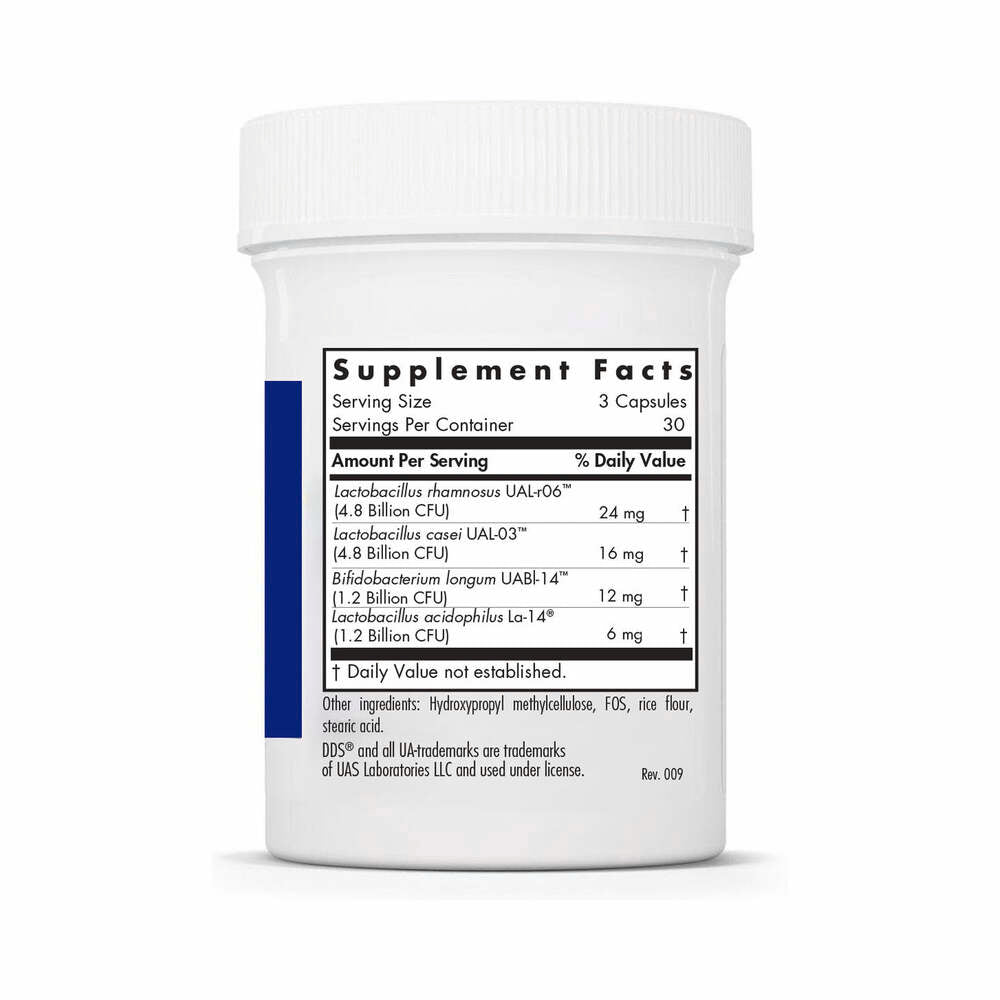 Combination of four beneficial lyophilized (freeze dried) probiotic bacteria of Lactobacillus acidophilus, L. rhamnosus, L. casei, and Bifidobacterium longum.