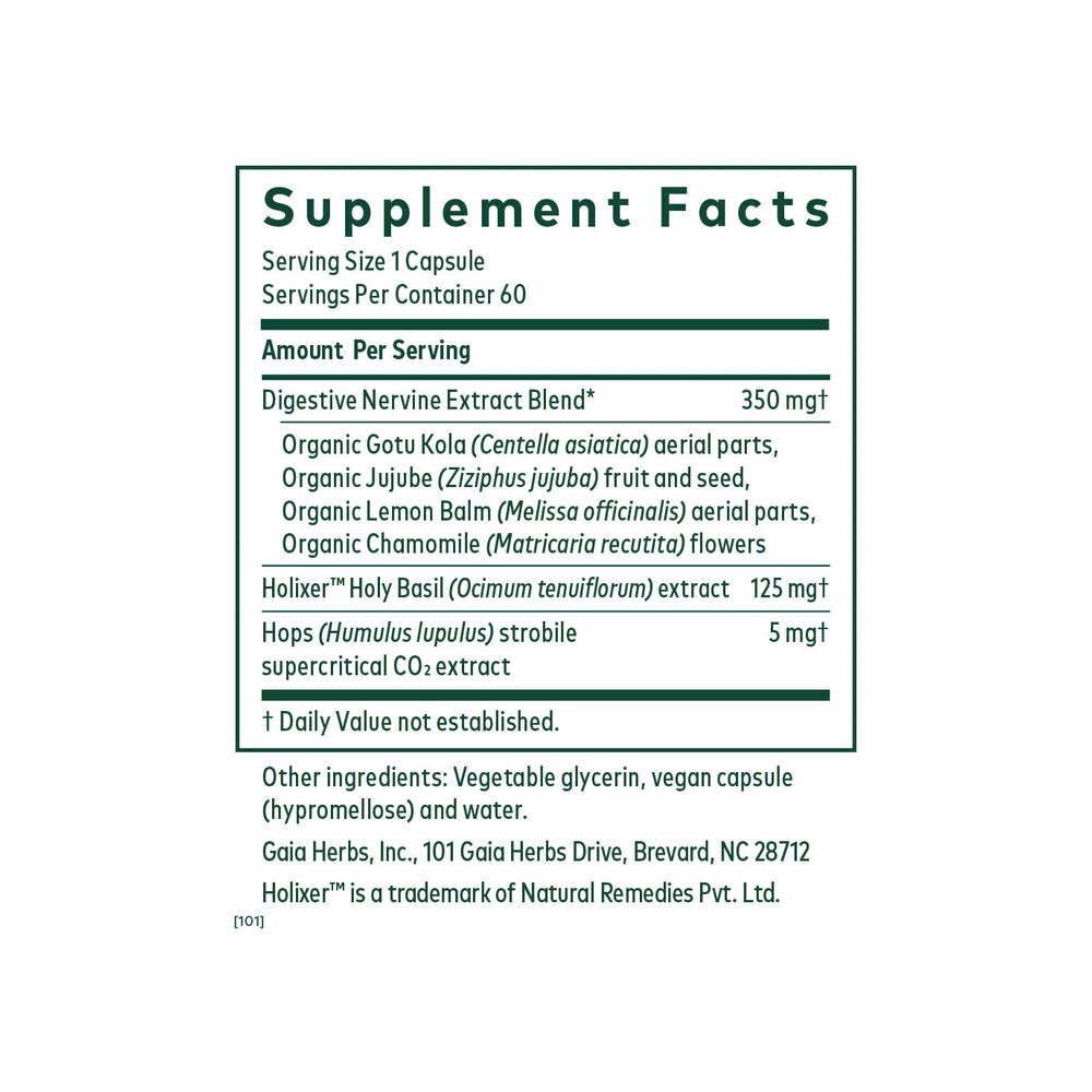 Digestive stress is extremely common and can cause a range of gastrointestinal problems. Gaia Pro’s GI Stress contains 125mg of clinically-studied Holixer™ Holy basil and a carefully formulated blend of digestive nervines, including gotu kola, jujube, lemon balm and chamomile, to help maintain a healthy stress response and digestive wellness. As a rasayana and adaptogen, Holy basil maintains equilibrium associated with the stress system in the body.