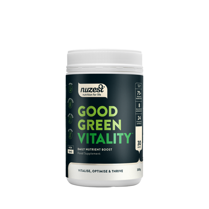 Good Green Vitality is designed to make good nutrition easy. Just one scoop/serve a day (10g) supports whole-body health and helps fill any nutritional gaps in your diet. Taken daily, the benefits build over time.