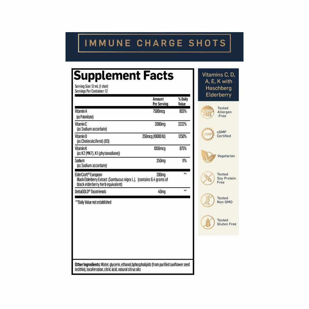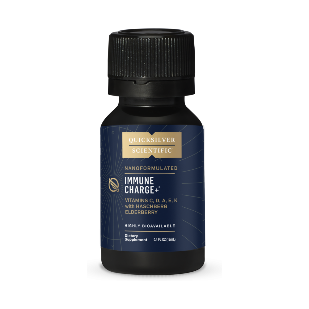 Immune Charge+ by Quicksilver Scientific comes in 12 portable wellness shots, providing key vitamins and elderberry that help to boost and support the immune system.