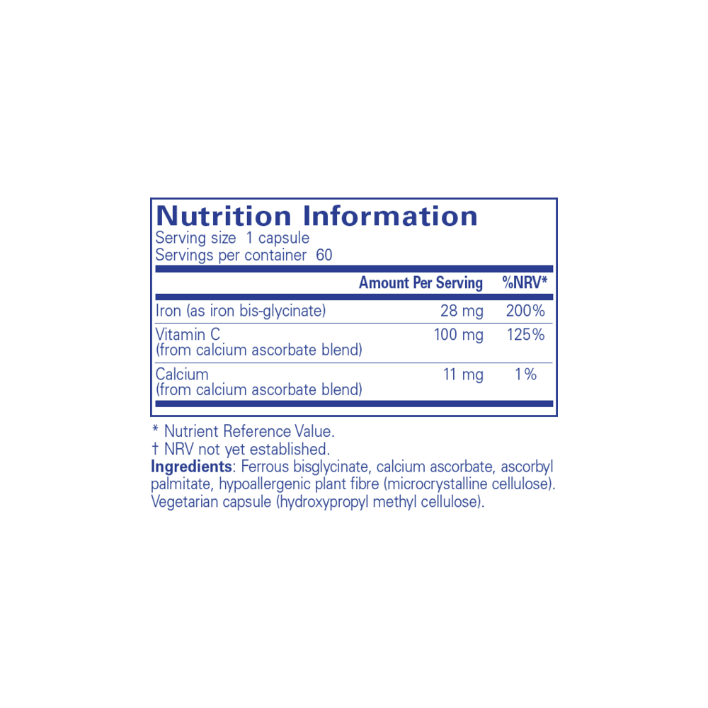 Iron-C by Pure Encapsulations contains both iron with the addition of vitamin C, to help the body to absorb the iron better. This is suitable for people with low iron levels, who may, as a result, be suffering from tiredness and fatigue.