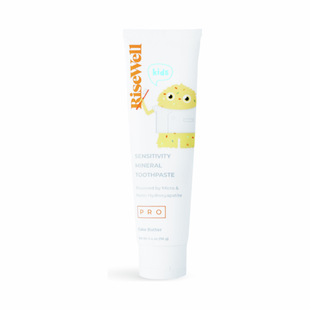 RiseWell Kids PRO provides an extra boost of hydroxyapatite to naturally strengthen, protect, and remineralize kid’s teeth as they grow. It’s also 100% clean and safe to swallow, and kids love the yummy cake batter flavour.