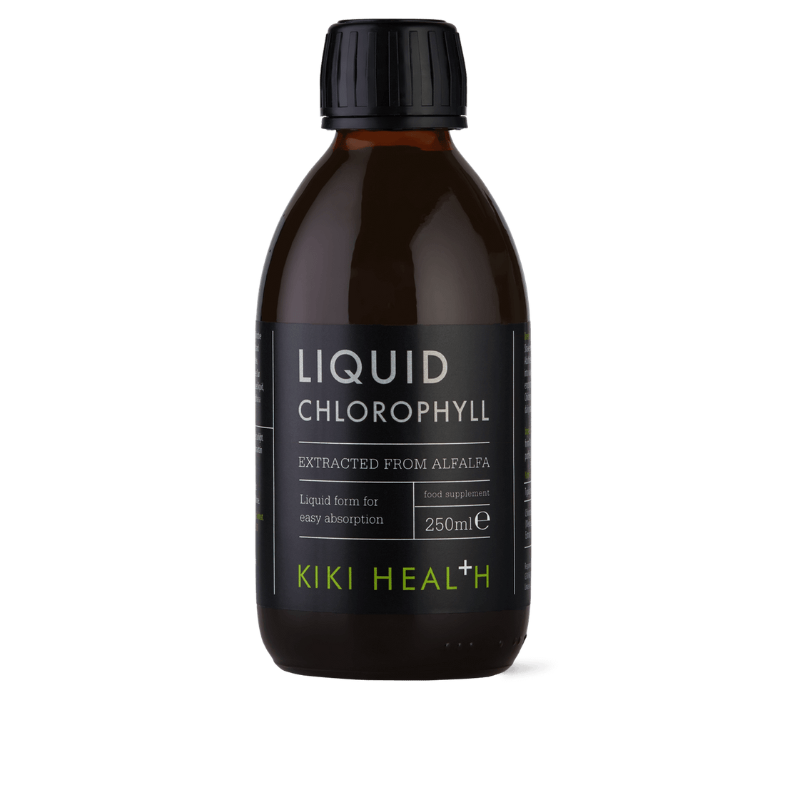 KIKI's chlorophyll comes in a bio-available liquid form and is a natural, plant-based liquid extracted solely from alfalfa grass without preservatives or artificial colouring and thus has a vibrant, natural taste.