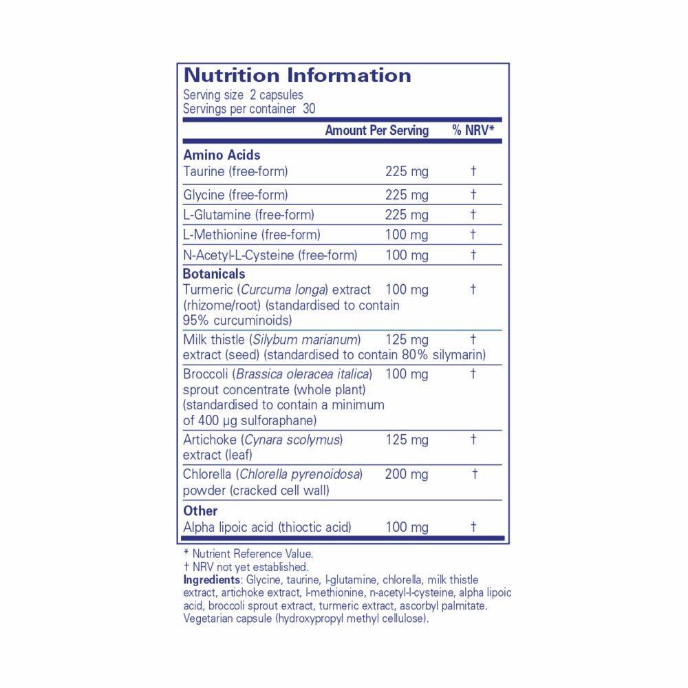 Liver GI contains a blend of phytonutrients and other compounds which are beneficial for the liver. Modern lifestyles, with nutrient poor diets, stress, and exposure to toxins in the environment can place a strain on the liver, which can impact its ability to safely remove toxins from our bodies. This can lead to a high toxic load in the body, which may contribute to many illnesses and diseases, even those that do not appear to be connected to the liver. This blend of botanicals, amino acids and other beneficial ingredients supports the liver to function optimally.