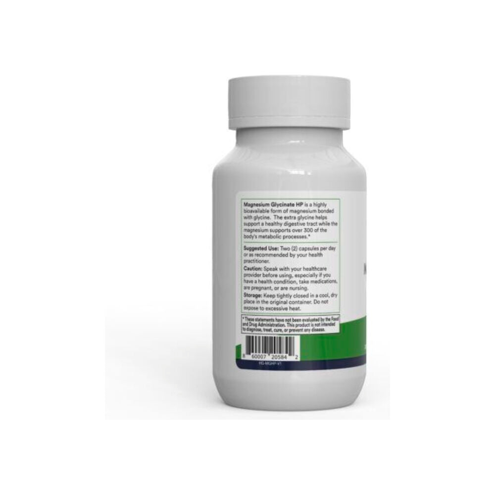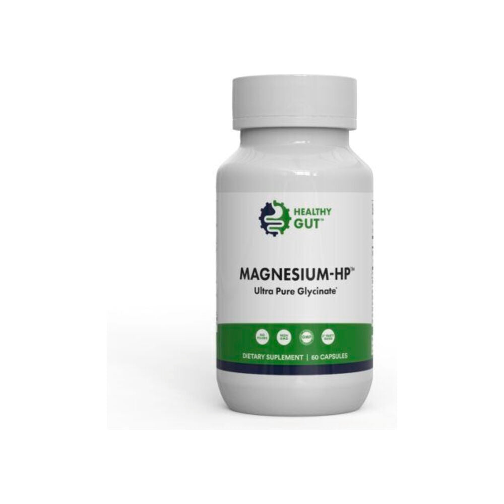 Magnesium-HP is made with magnesium glycinate, a form of magnesium bound with glycine. This is the most gentle form for your gut and reduces the chance of stomach discomfort.