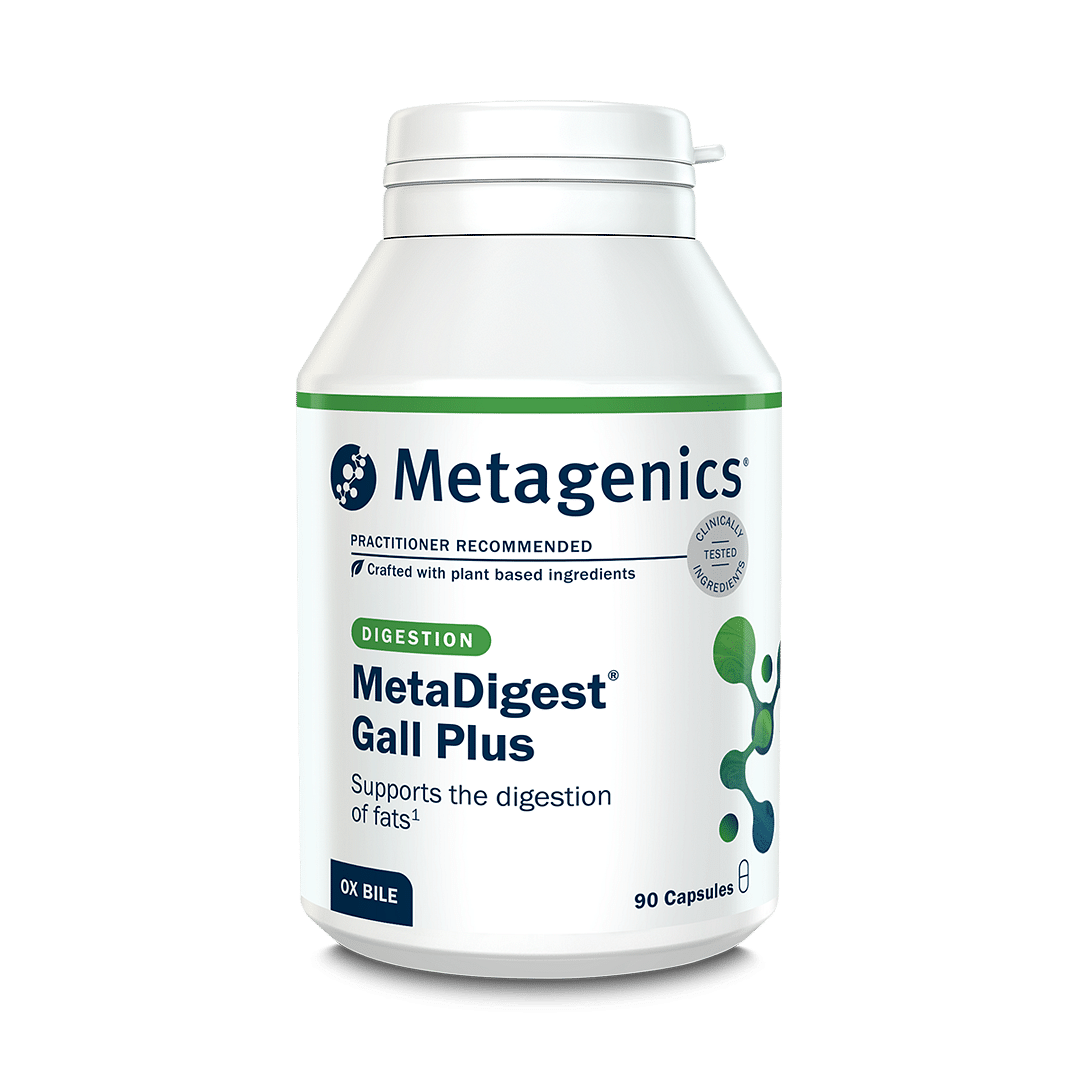 MetaDigest® Gall Plus is ideal for anyone who needs support with fat digestion, including those with gallstones, those without a gallbladder, or individuals who struggle to digest fats efficiently. It contains key ingredients like ox bile, lipase, and lecithin, which help emulsify and break down dietary fats, supporting smoother digestion and nutrient absorption.