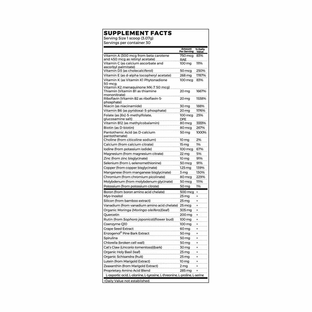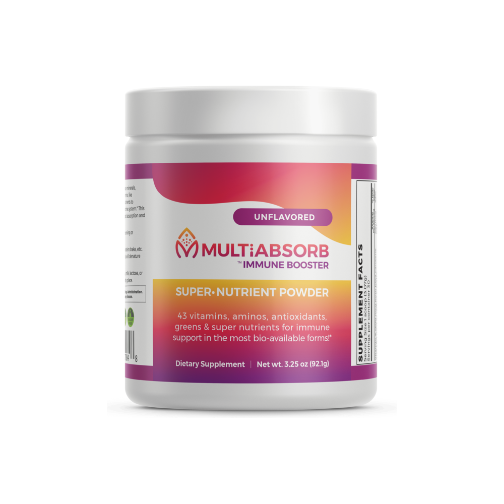 MultiAbsorb Immune Booster is a complete multi-vitamin and immune support in powder form – where every nutrient is ready to scoop and mix in the liquid of your choice. No fillers, flow agents, preservatives, or artificial anything! Add a scoop into water, juice, your protein shake or smoothie, just shake/blend and go!