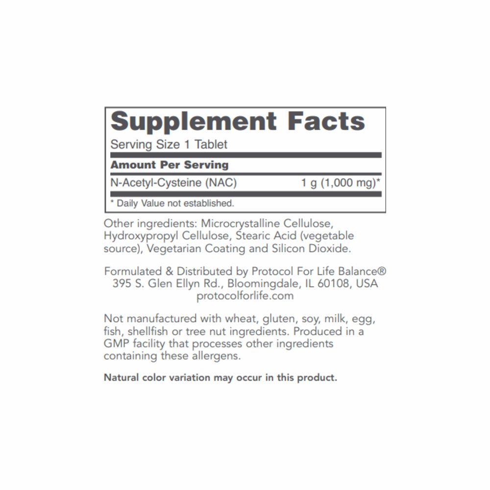N-Acetyl-L-Cysteine (NAC) 1000mg - 120 Tablets | Protocol for Life Balance