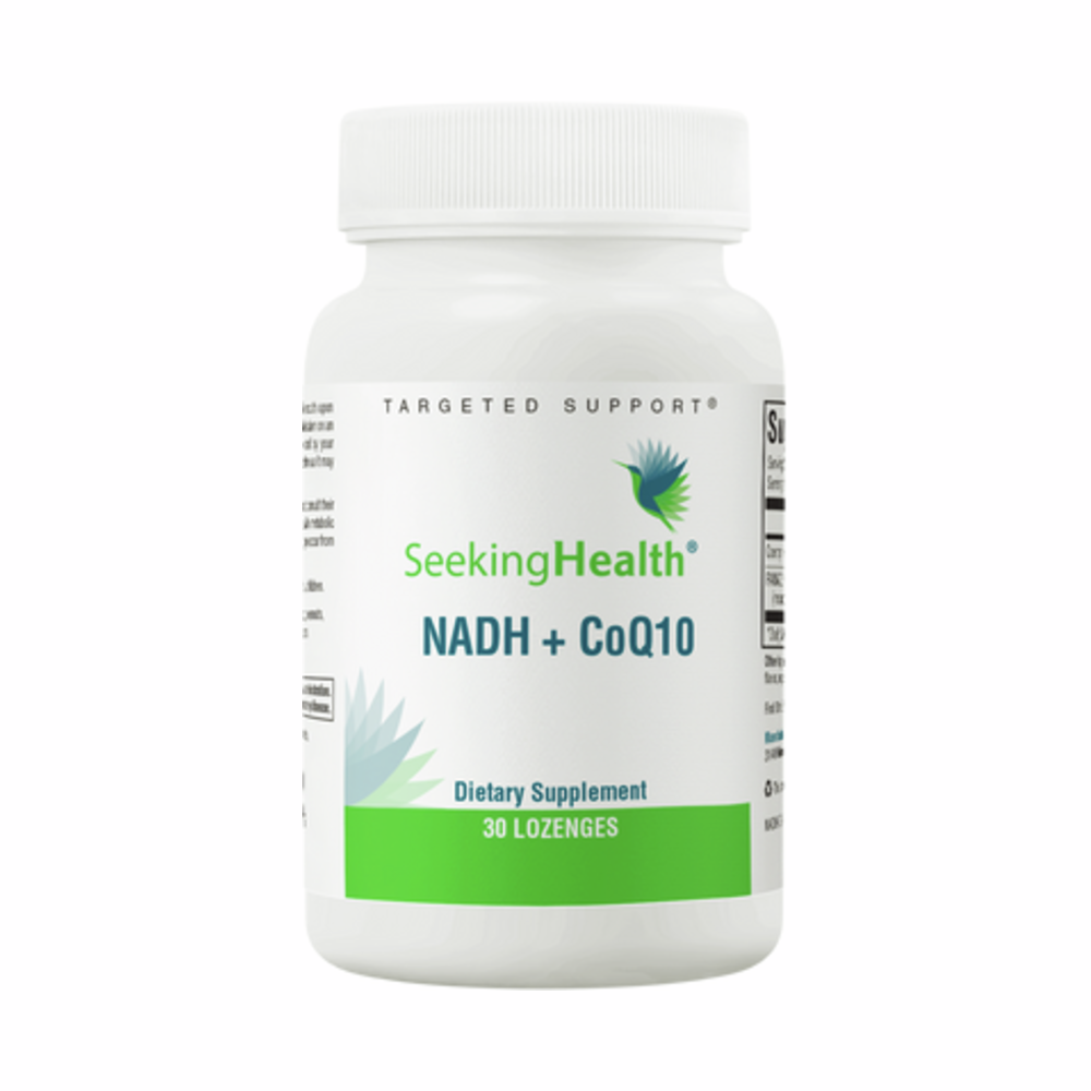NADH, the biologically active form of niacin (vitamin B3), and CoQ10 work in synergy in this formula to support energy production. Because NADH is an unstable compound, the form contained in this supplement is microencapsulated in beeswax, chlorophyll, and plant fat. This protects NADH from light, moisture, and stomach acid to preserve its activity and potency. CoQ10 acts as an antioxidant and is known for its cardiovascular health benefits. The combination offers superior antioxidant and anti-ageing support.