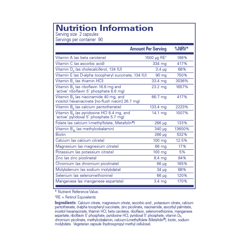 Nutrient 950E is a multivitamin and mineral suitable for both men and women. It provides high quality vitamins and minerals to support overall general health and compliments a healthy, balanced diet. It supports the immune system, energy production and energy levels as well as bone and dental health. Nutrient 950E is a great option if you feel you need a bit of additional nutritional support.