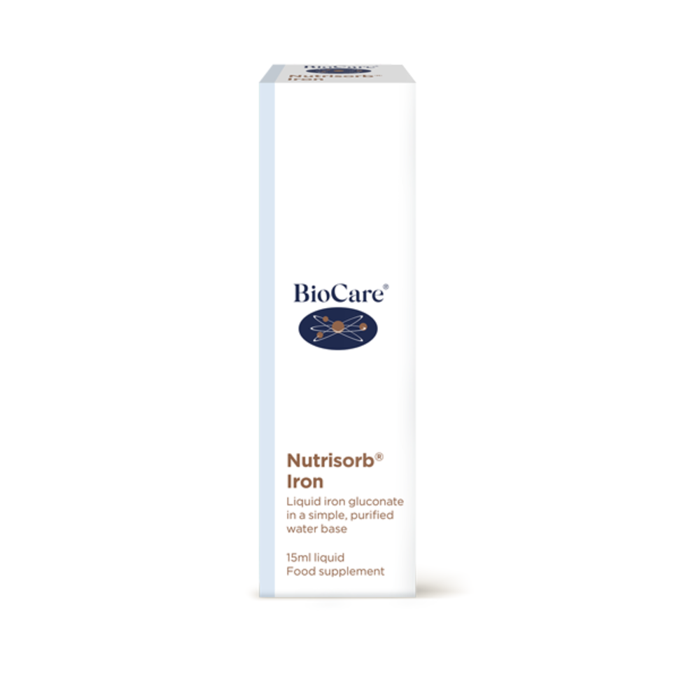 BioCare's Nutrisorb Liquid Iron is a liquid iron formula in a simple purified water base. Iron is an important mineral that helps maintain healthy blood and may also reduce tiredness and fatigue.