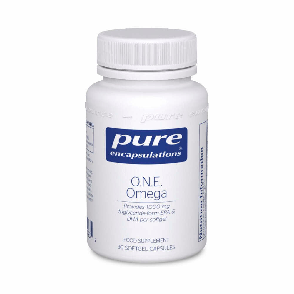 O.N.E. Omega by Pure Encapsulations provides a high strength, convenient, one-a-day omega 3 supplement containing EPA and DHA from fish oil. The best source of EPA and DHA is found in oily fish and may be particularly beneficial for heart health.