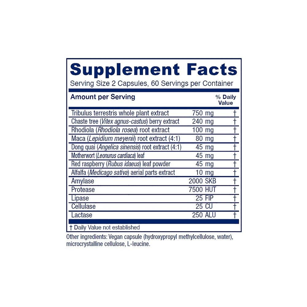 Pregnancy Prep™ contains botanicals such as dong quai, motherwort, alfalfa and maca which support hormonal balance. It also contains rhodiola to help enhance fertility. Red raspberry leaf has been used for centuries to support the uterus in preparation for pregnancy. Research has shown that Tribulus supports ovulation as well as ovulation stimulating drugs. Use should discontinue once pregnant, and this formula is not suitable during breastfeeding.