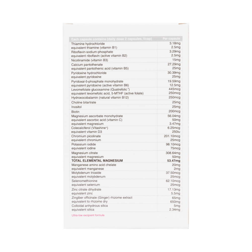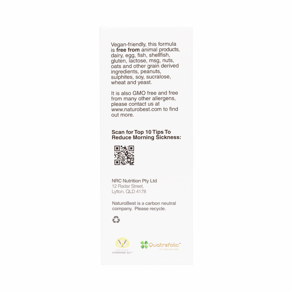 Prenatal Trimester One with Ginger, covers the unique nutrient needs of the first trimester of pregnancy, specially formulated in a way that provides morning sickness relief. It contains well-researched, high-quality minerals and vitamins to support a healthy pregnancy and foetal development. B vitamins in their active form contribute to better absorption. Does not contain iron. Iron supplementation in the first trimester may aggravate the symptoms of morning sickness.