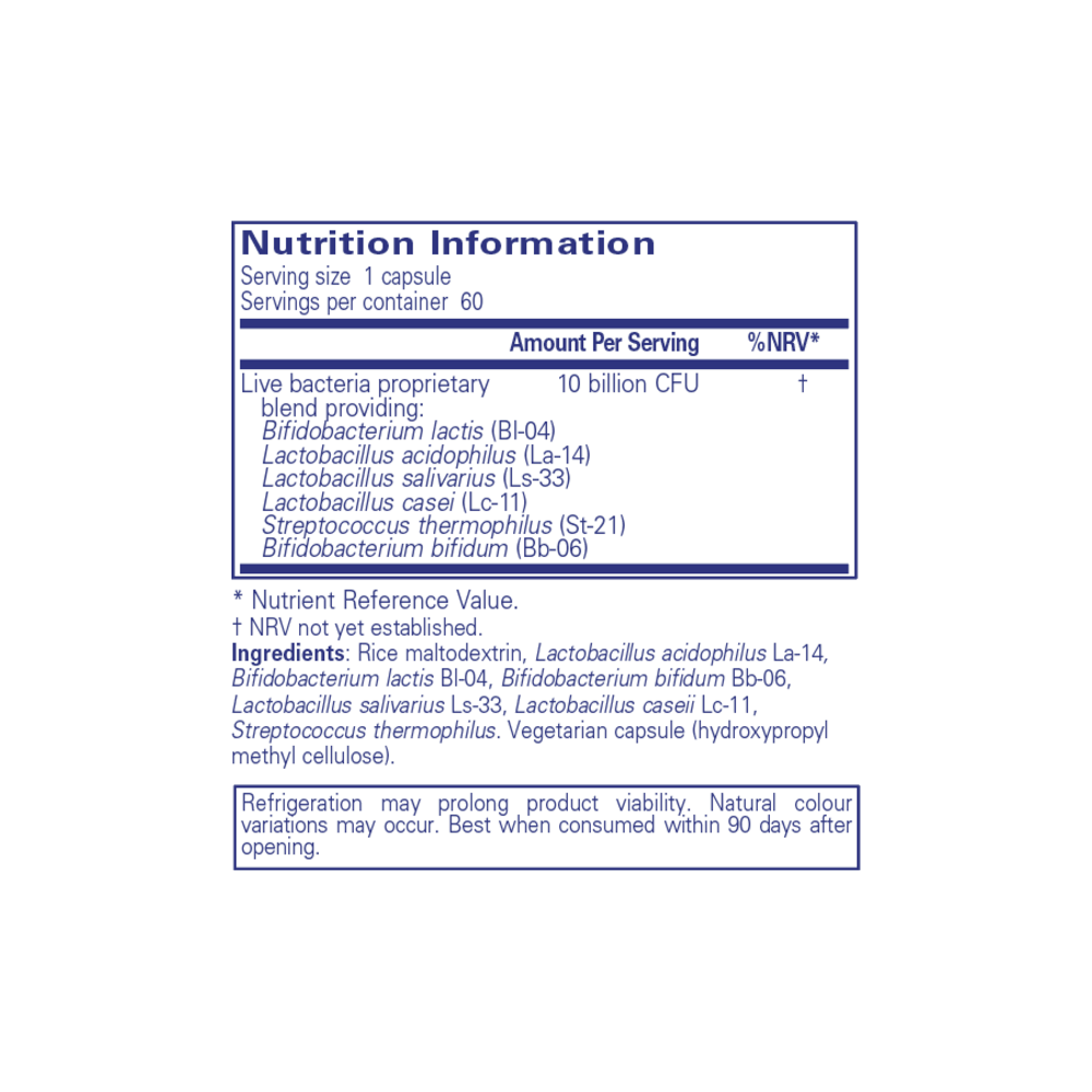- Contains Lactobacillus, Bifidobacterium and Streptococcus