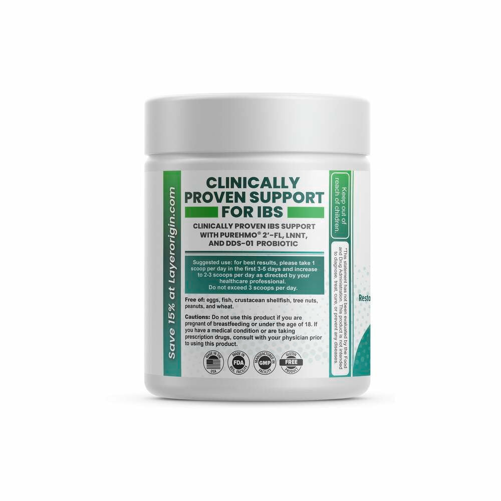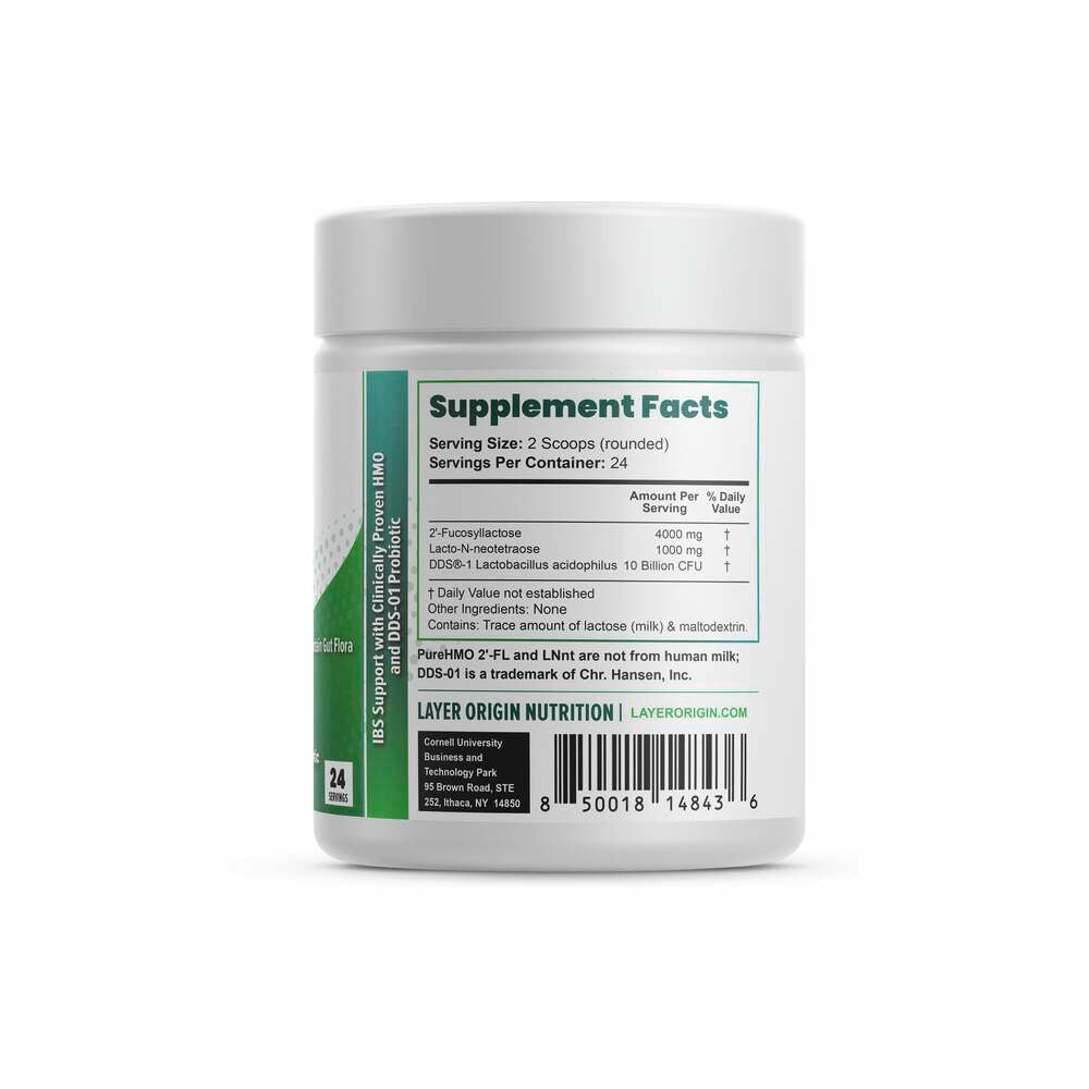 Super Prebiotic HMOs: The unique blend of 2'-FL and Lacto-n-neotetraose (LNnT) human milk oligosaccharides are clinically proven to relieve IBS symptoms, including constipation, gas, bloating, and diarrhea.