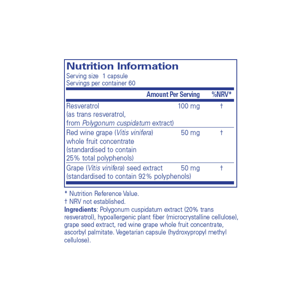 Resveratrol Extra by Pure Encapsulations provides 100mg of Resveratrol with polyphenols from red wine and grape seed extract. Resveratrol is a natural compound found in plants that acts like an antioxidant providing many health benefits.