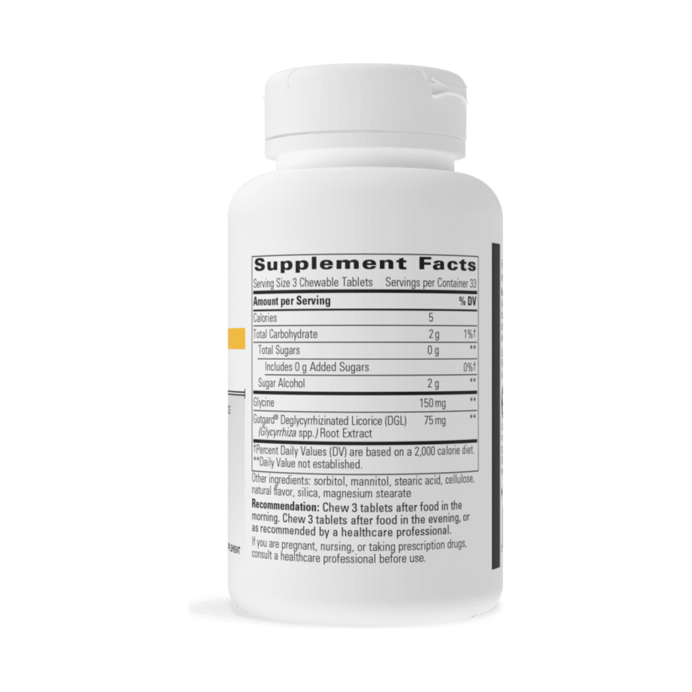 Rhizinate™ Fructose Free is deglycyrrhizinated licorice (DGL) in a fructose-free chewable formula for soothing digestive relief.