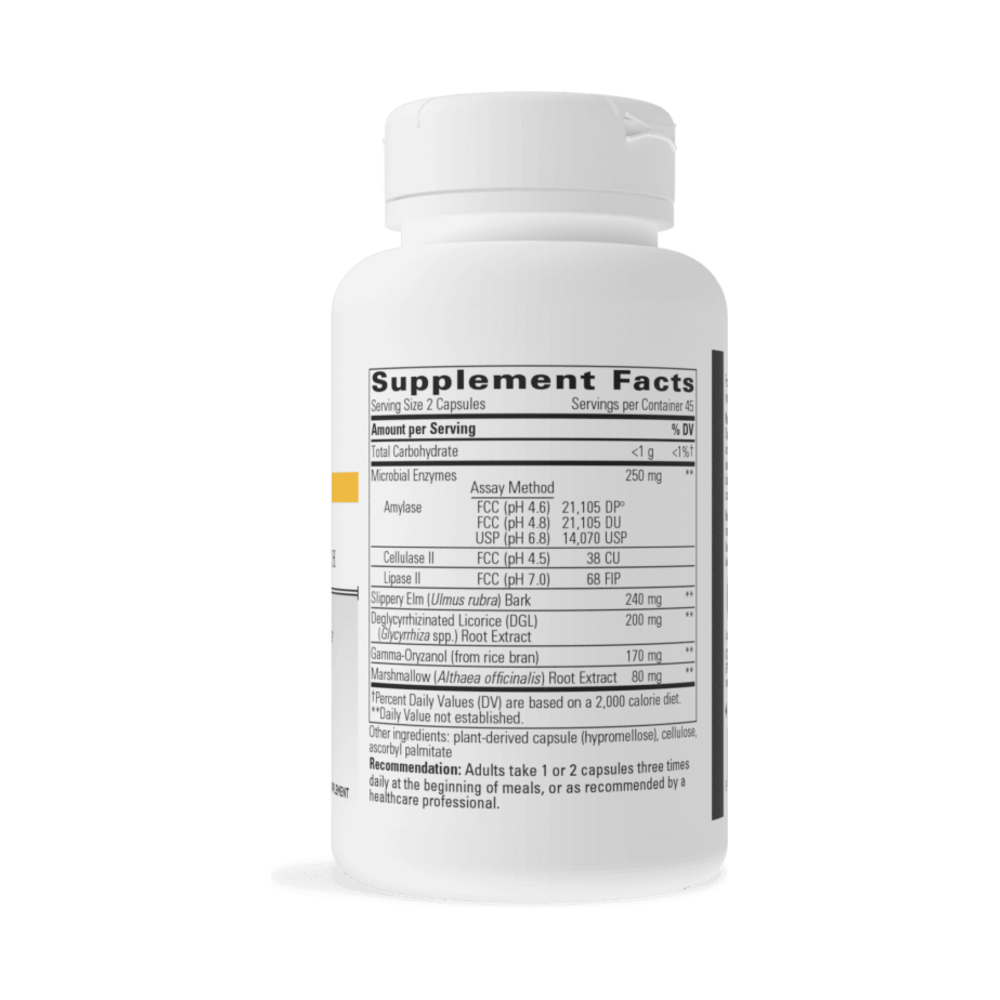 Similase® Sensitive Stomach combines microbial enzymes with the demulcent herbs marshmallow and slippery elm to provide gentle support for the gastrointestinal tract.