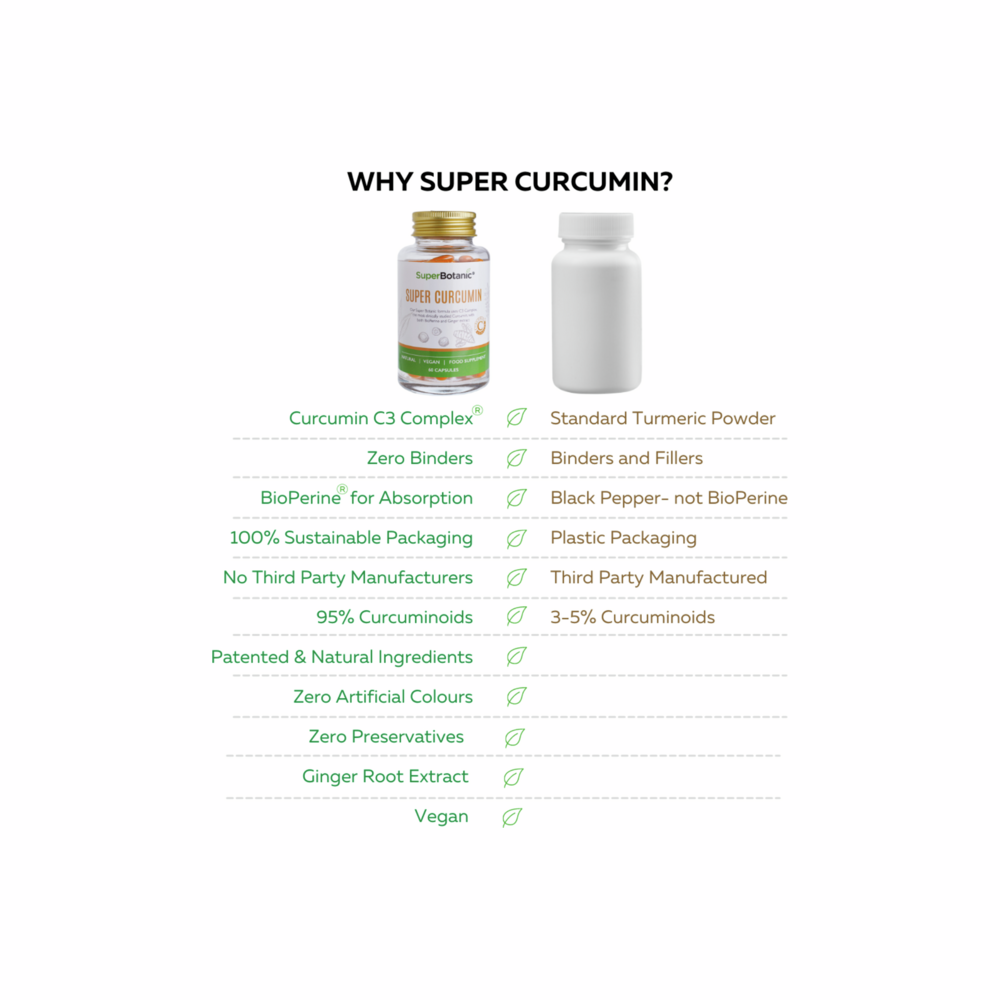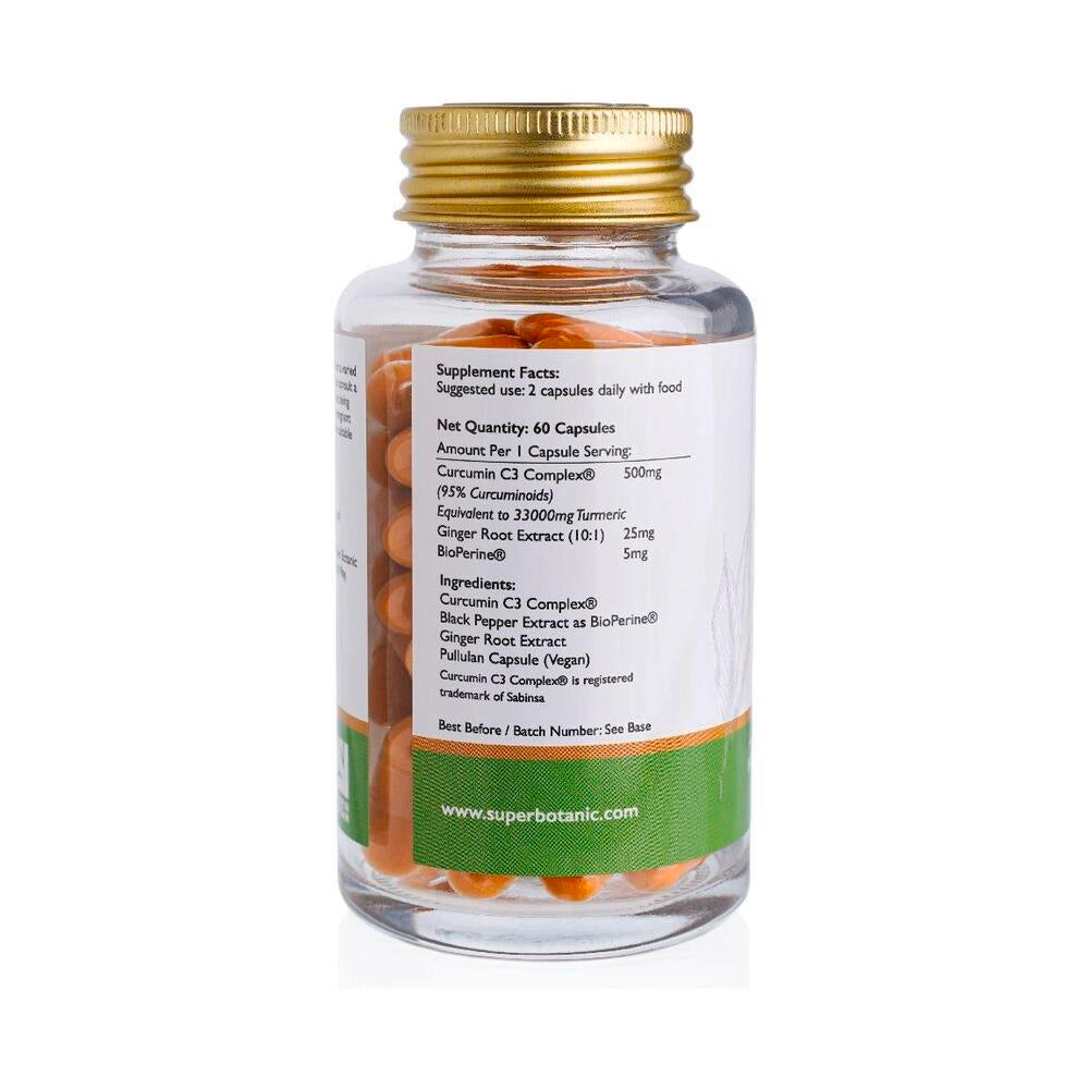 SuperBotanic use Curcumin C3 Complex not only is it the most Clinically Researched curcumin but it is also standardized to 95% curcuminoids, including 70-80% curcumin, 15-25% Demethoxycurcumin, and 2.5-6.5% bisdemethoxycurcumin.