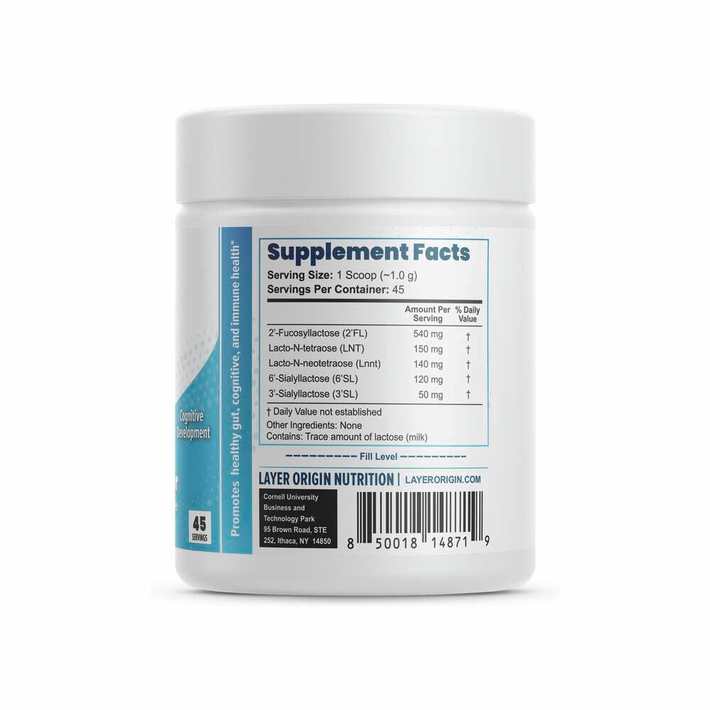 - Premium 5-HMO mix for Kids (Age 1+): 2'-Fucosyllactose (2'-FL), Lacto-N-tetraose (LNT), Lacto-N-neotetraose (LNnT), 6'-Sialyllactose (6'SL), and 3'-Sialyllactose (3'SL). (Patent-pending) This combination better mimics the composition of the true HMO profile found in breast milk.