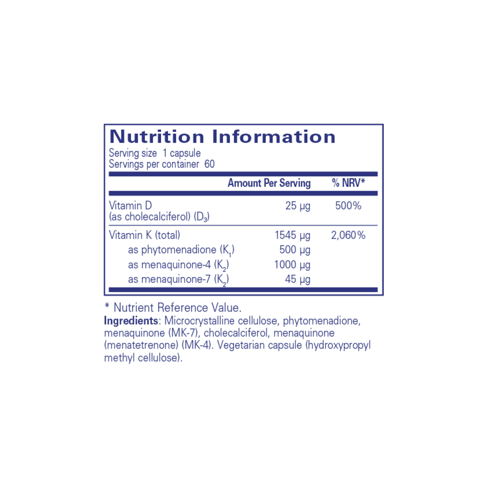 Vitamin K with D3 (previously Synergy K) by Pure Encapsulations contains both vitamin K and vitamin D which work together in the body. It is often more beneficial to take a combined vitamin D and K supplement than taking either of these as a single supplement.