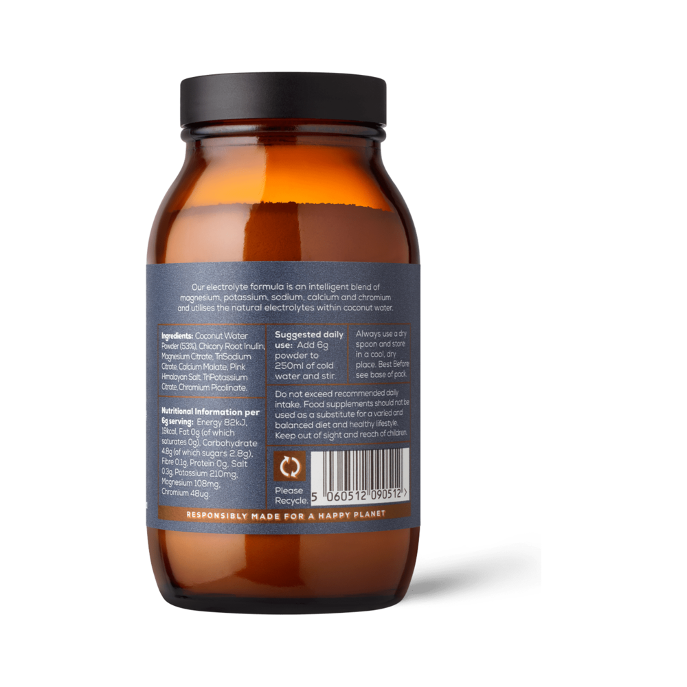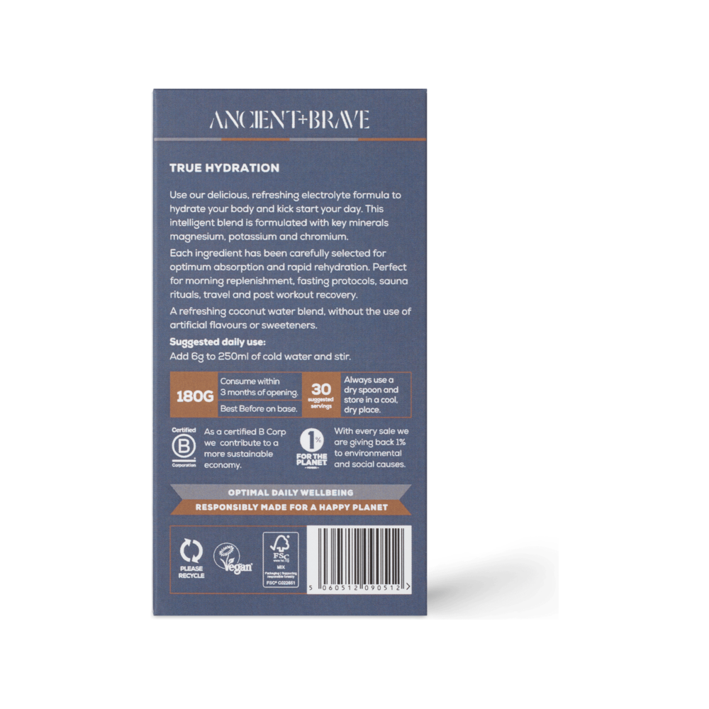True Hydration is rich in electrolyte minerals sodium, potassium, magnesium and calcium, supporting your mind and body for optimal performance, alongside balancing chromium which contributes to normal maintenance of blood glucose levels and nutrient metabolism.