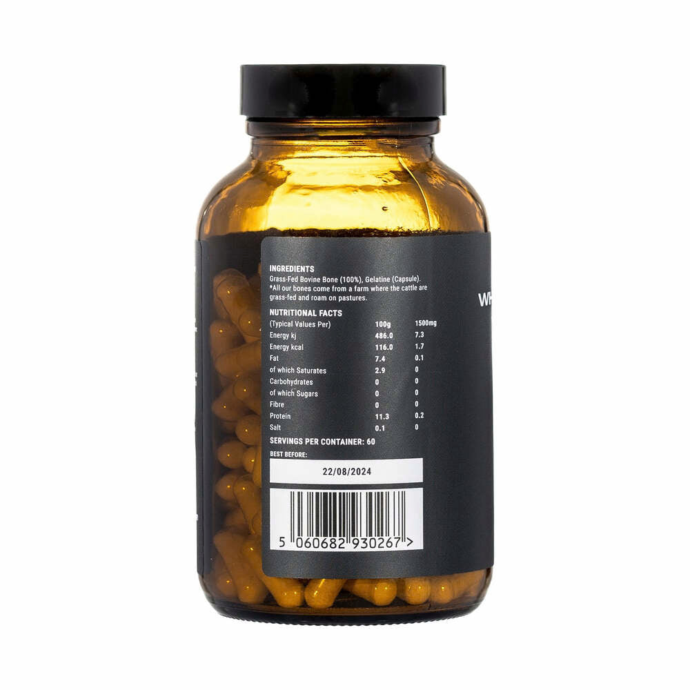 Made with grass-fed and finished bovine bones from a regenerative farm, this APE Nutrition supplement supports optimal bone mineral composition and overall bone strength. Our complex contains all the natural elements of healthy bone including the essential minerals calcium and phosphorous (in their ideal ratio of 2:1), growth factors, type I collagen, glycosaminoglycans and a broad range of other trace elements.